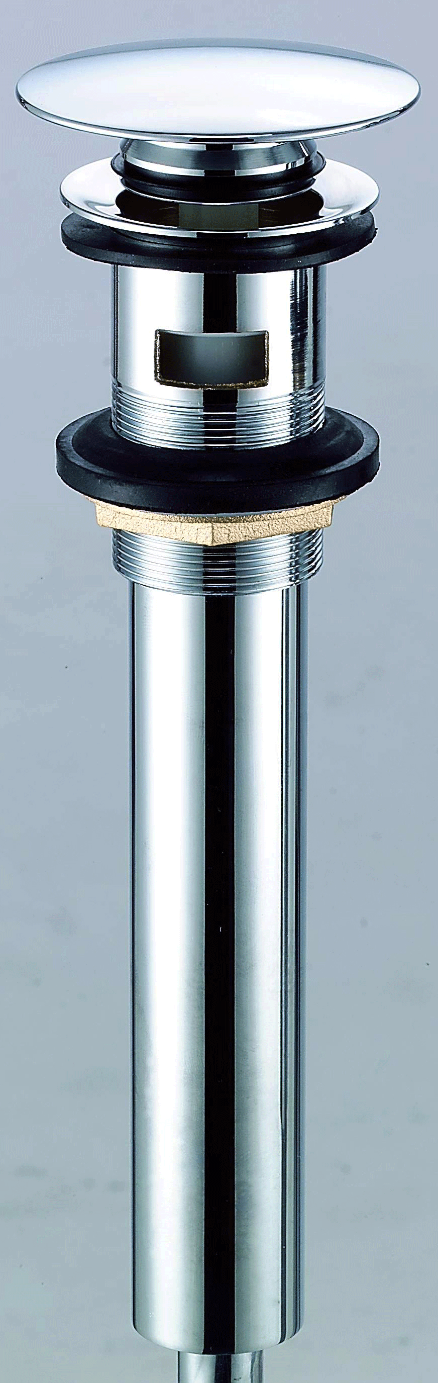 1 1/4"Brass Soft Touch Drain w/Brass Tailpiece Less Overflow, Round Pattern